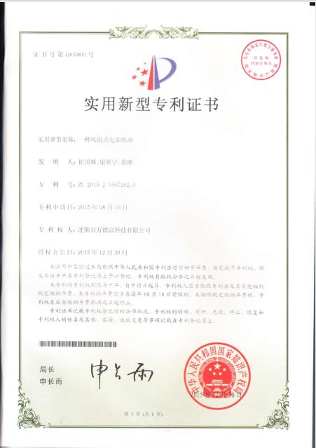 實(shí)用新型-風(fēng)扇式電加熱器262.0-1